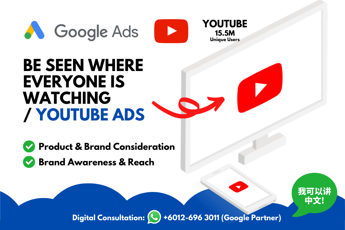 YouTube Video Ads - Be seen where everyone is watching! Be able to show your YouTube Video Ads to 15.5M Unique Users in Malaysia.
