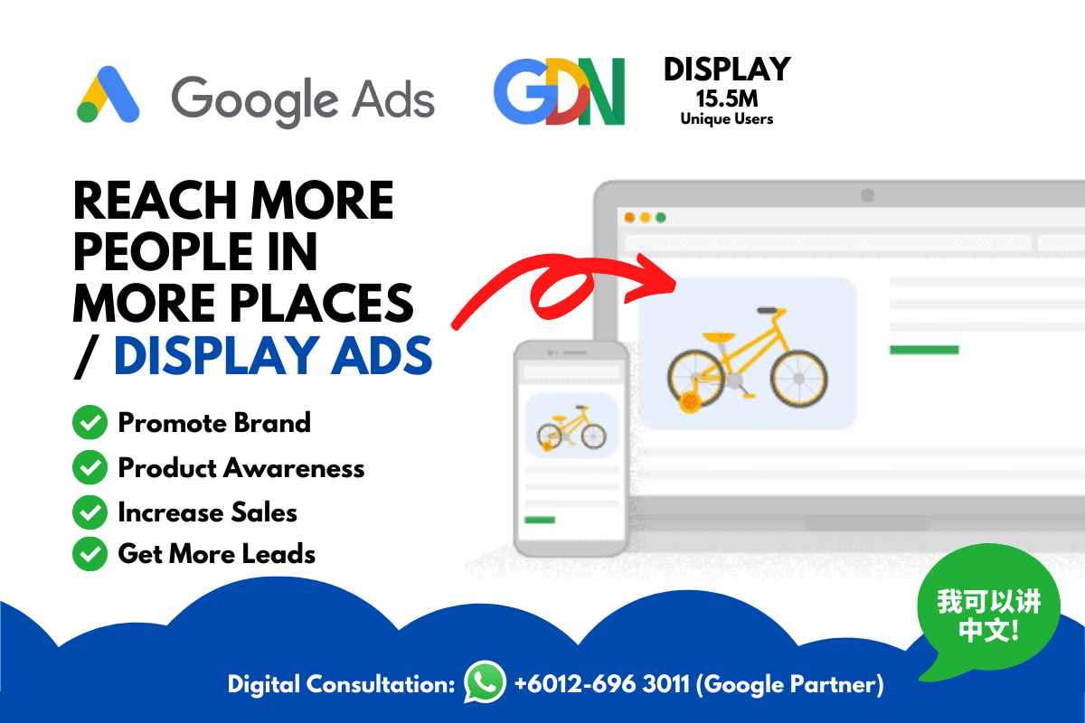 Google Display Ads - Reach more people in more places! Be able to show your Display Ads to 15.5M Unique Users in Malaysia.